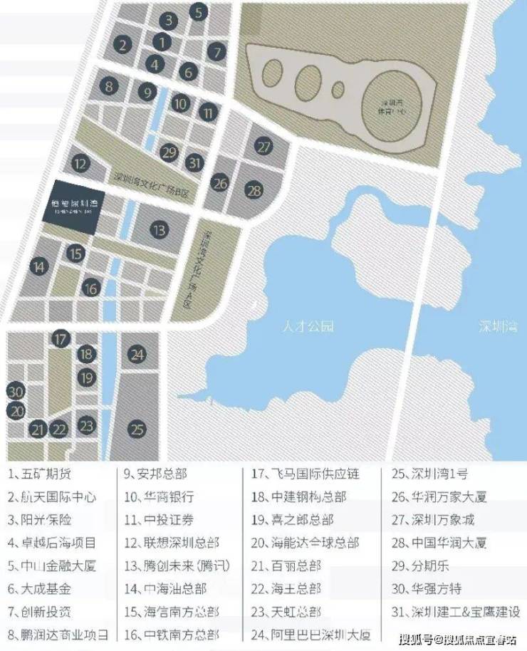 位于深圳后海总部基地核心,东滨路与科苑大道交汇处,直面深圳湾一线无遮挡海景,南向远眺香港群山,坐拥山海城三重稀缺景观,是深圳湾岸线开发饱和后不可复制的绝版地块。 ◦ 周边汇聚华润春笋、腾讯、阿里等80余家头部名企总部,身处金融、科技、商务产业集群核心,交通多维贯通,步行可达地铁2号线,驾车短距直达深圳湾口岸,15分钟畅达前海、科技园、福田CBD。