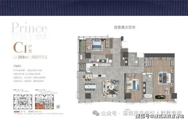 全户型纵享环幕视野。项目打造主力建面约215-415㎡纯粹品质公寓共191席,顶层为建面约1270㎡公寓产品。