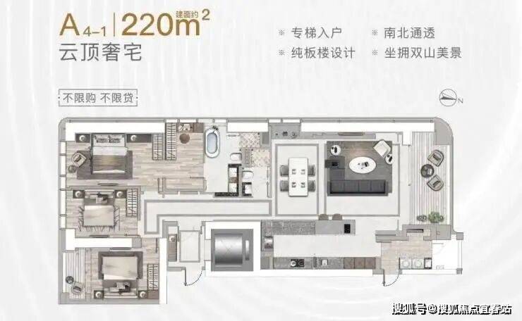160-220㎡ 2-3+1房(专梯入户)