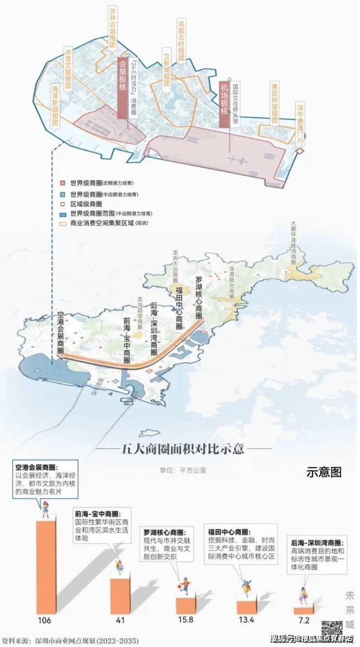 2023年8月,深圳规划了5大商圈,其中四个在深南-滨海沿线范围。只有“空港会展商圈”,另辟一个新的商业未来。