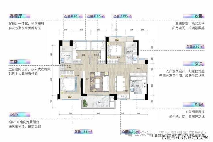 •整体户型方正实用,多飘窗利用,79%超高使用率;