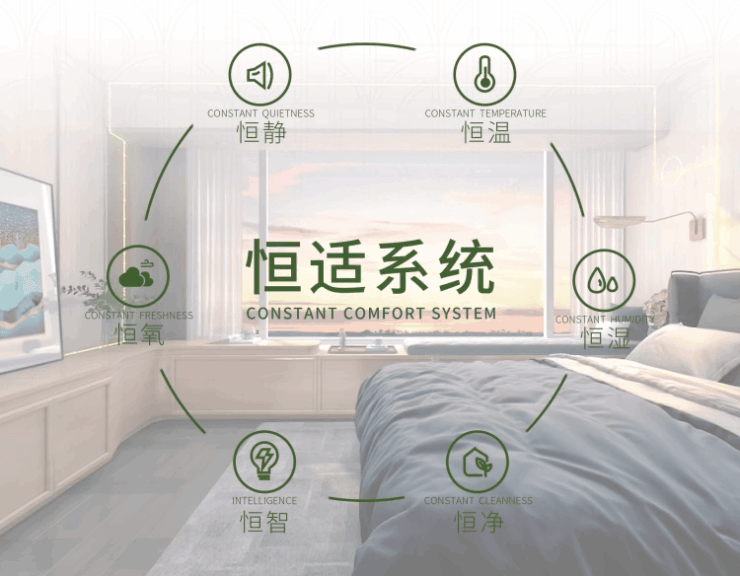 作为广州首个恒适系统科技健康豪宅,引入恒适系统,打造恒温、恒湿、恒静、恒净、恒氧、恒智的健康新生态。