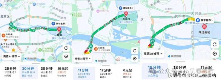 自驾的话,项目旁边200米就是内环路,过个江湾大桥就是越秀区,周边还有东晓路、滨江东路等干线,基本算是四通八达,开车去琶洲、越秀、珠城等地30分钟内都可抵达。
