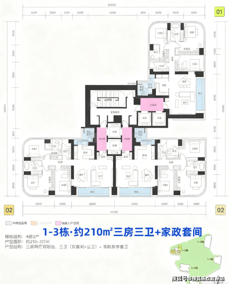 小区共住宅约407套,面积211-218-302-370-512平户型,预计首推D栋或E栋302平,均价预计17-18万/㎡!