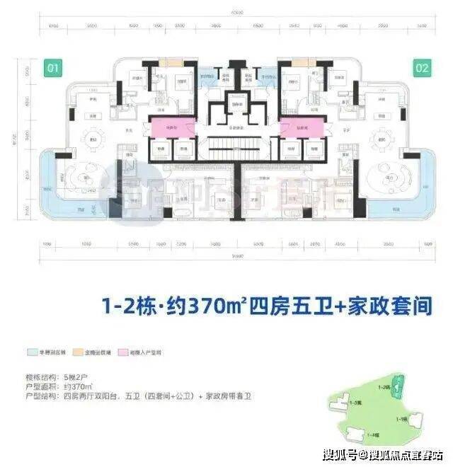 B栋 370㎡ 层高3.5 四套房,东南、47层,5梯2户,约80余套