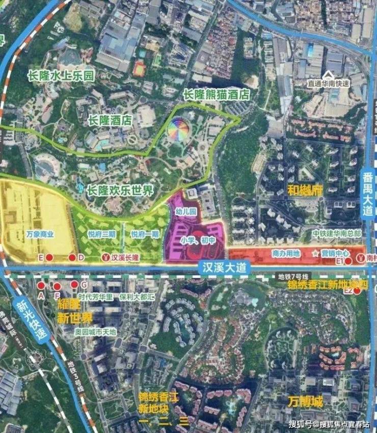 二期距离地铁3/7号线汉溪长隆站就更近了,下楼就是地铁口