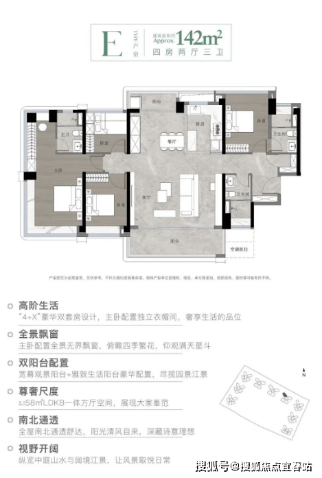 这些户型不仅面积合理,而且每一户都配备了大阳台,主卧室更是享有240度窗景,提升了居住舒适度。其中,改善型户型108-128-142平方米为三梯四户的超高层楼栋,南北通透,视野开阔。