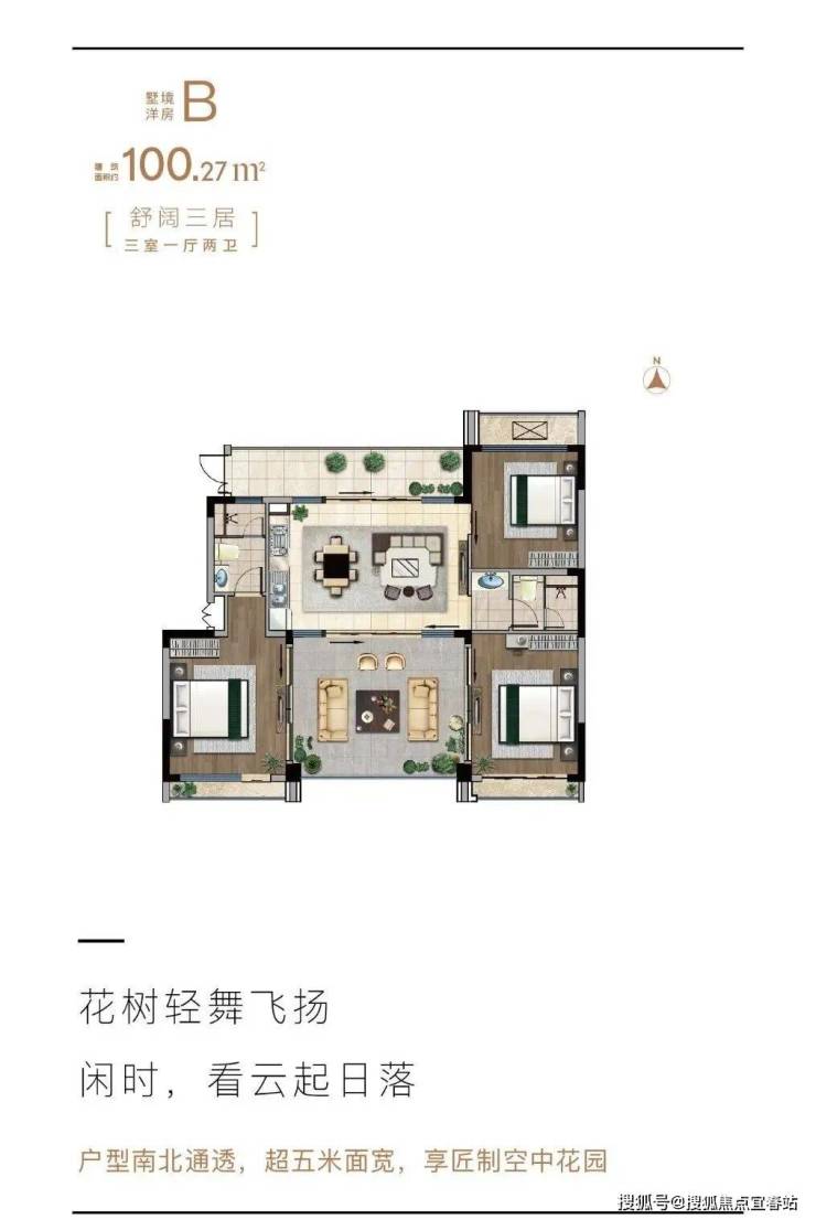 墅境洋房B户型 三房一厅两卫 建筑面积100.27㎡