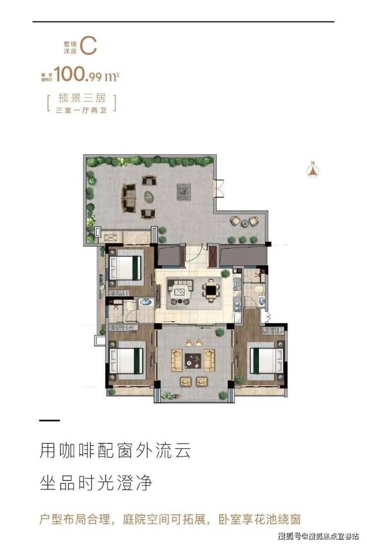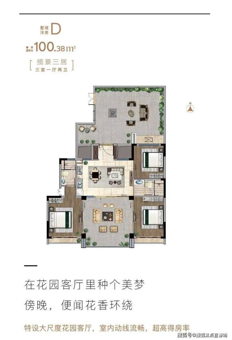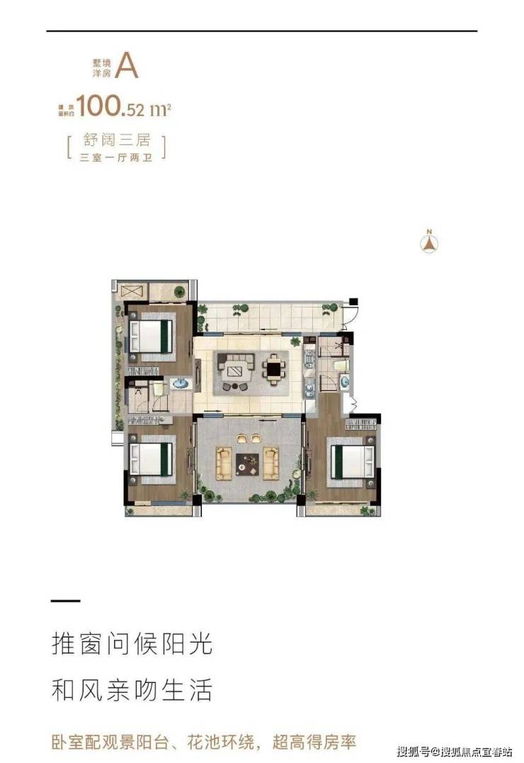墅境洋房A户型 三房一厅两卫 建筑面积100.52㎡