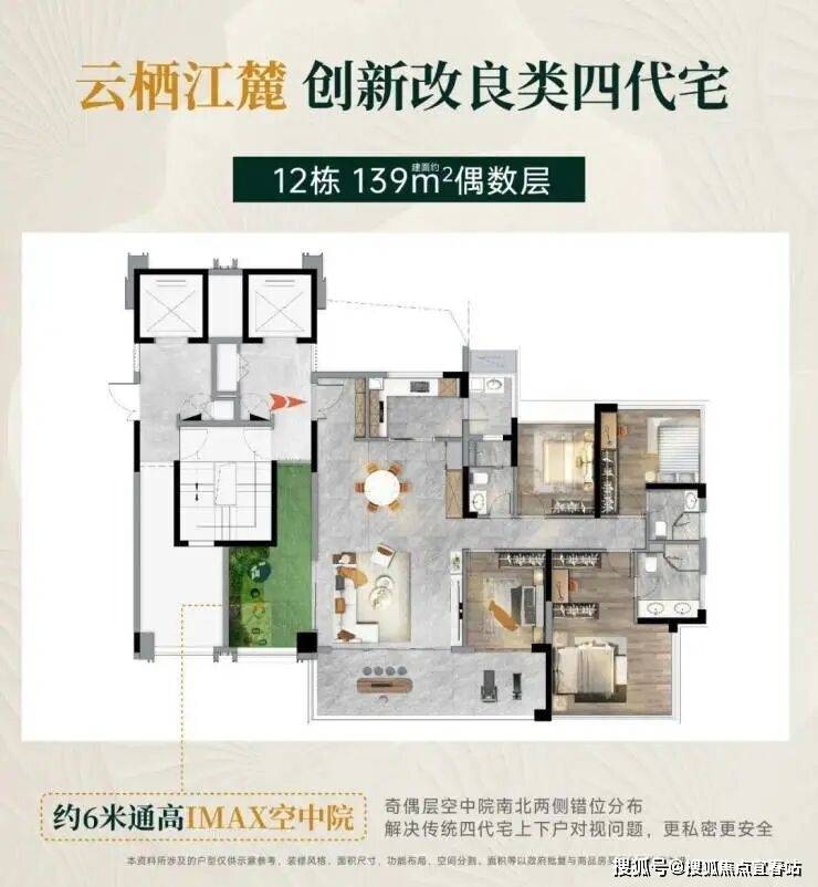 传统四代宅的上下对视,让露天空间成为心理负担。云栖江麓通过南北错层设计,将空中院设置在户内,让每家每户的庭院都成为真正的私密领地。父亲的晨练、母亲的茶叙、孩子的嬉戏,都不再是别人眼中的“风景”。这份自在,才是改善生活的真谛。