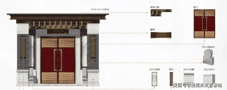 宅,以门户为冠带。无论是王室宫殿,还是世家府邸,门庭规制始终都渗透着礼序等级之道,代表威望所在。深圳院子的门头体系设计灵感来源于皇家王府官宅门头,礼序威仪,宏伟气派。一道门一重礼,用一院宅门威仪,传承着千年归家文明史。