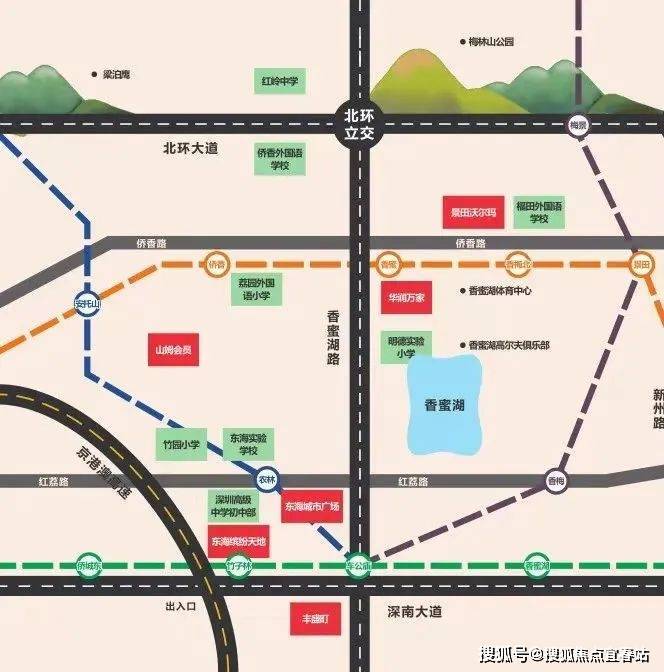 项目位于福田CBD与香蜜湖双核心区域,紧邻深圳高尔夫俱乐部,北侧可直面136万㎡高尔夫景观,部分高层户型还能俯瞰福田CBD天际线、红树湾公园及深圳湾海景,景观资源稀缺且独特。