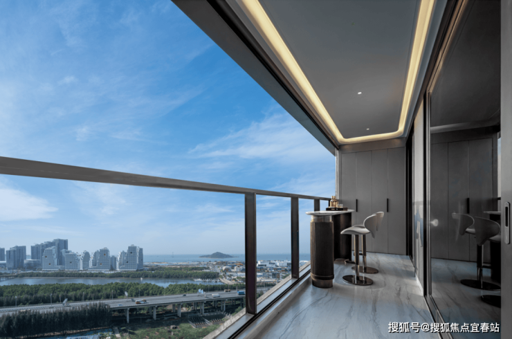 约7.5米的巨幕阳台,是南向望前海湾,视野非常开阔,在阳台摆个小桌子,和家人或好友品茗聊天,抬头就可就看到前海湾景观、企鹅岛。