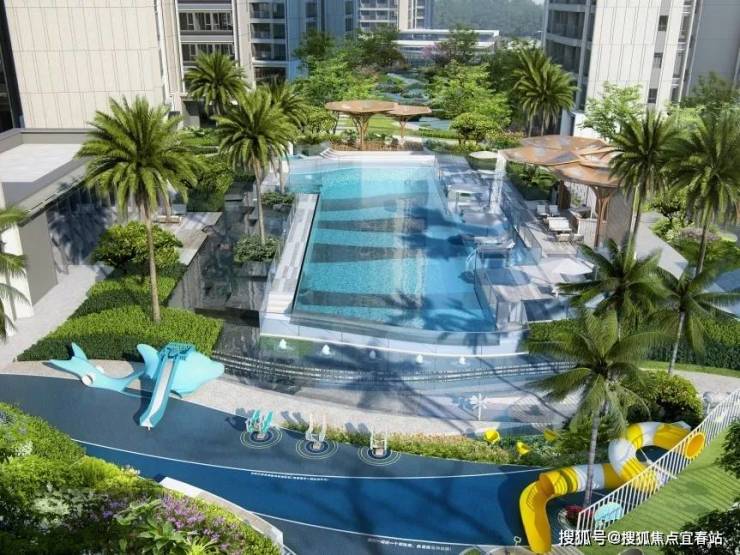 园林景观内,雨林泳池、春知学堂、海豚主题儿童乐园等功能空间有机铺陈,打造出复合多功能的公园活力社区,实现人与自然的亲密互动。