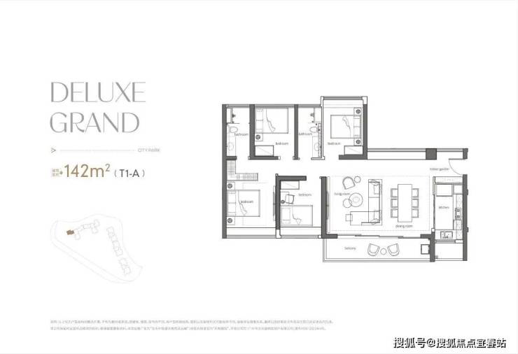 190方户型,四房两厅三卫双套房,T2组合、7米大阳台、9米阔卓厅堂、近55方餐厅,诠释了功能与奢适完美相融