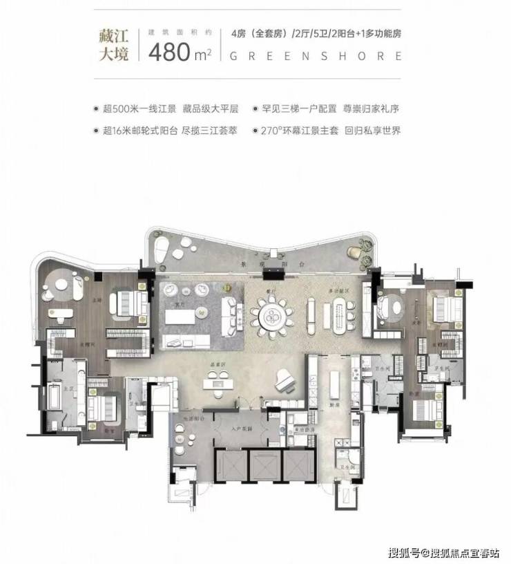 画江为界,跨越时代的岛尖藏品,4套房2厅5卫+1多功能房设计,4.0时代人居范本,重新定义珠江豪宅天花板。