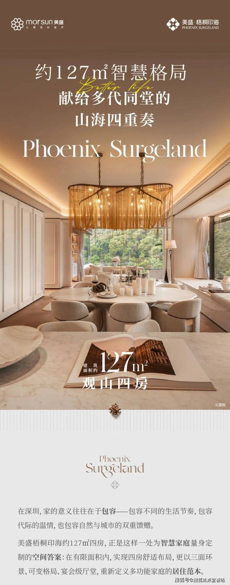 美盛梧桐印海,以全景舱户型的极致产品力,敬邀您开启 “把山海装回家” 的居住新篇。