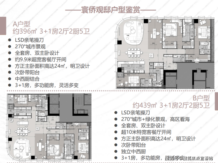 荟萃CCD、柏朗国际两大设计团队联袂匠造,以国际化视野,精研侨城湾芯云端新作,仅28席,位于建筑23-29层,全高区景观视野,建面约323-446㎡,纯粹大户云端居所。4款室内设计风格独特,尺度阔绰,兼顾细致实用,畅享舒适空间。