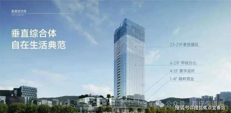 集合云端居住、奢雅会所、精粹商业、甲级办公为一体的垂直综合体,生活&休闲、社交&事业,悦然相逢,自在切换。