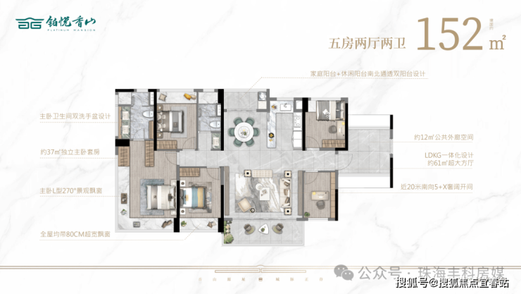 建面约152㎡5房户型,更是拉满了居住尺度。