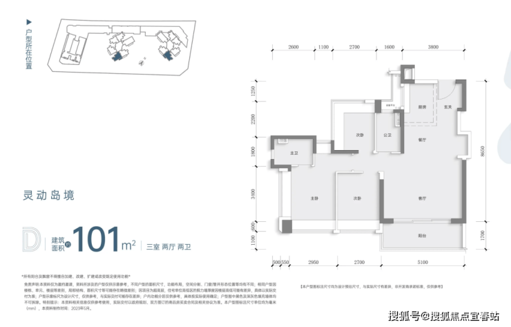 建面约101㎡三房两卫户型:空间更为灵活,客厅开间做到了5.1米,尺度宽阔,预留了120寸投影幕布点位,观影距离绝佳;主卧面宽约3.5米,将舒适度放大优享舒适生活格局。
