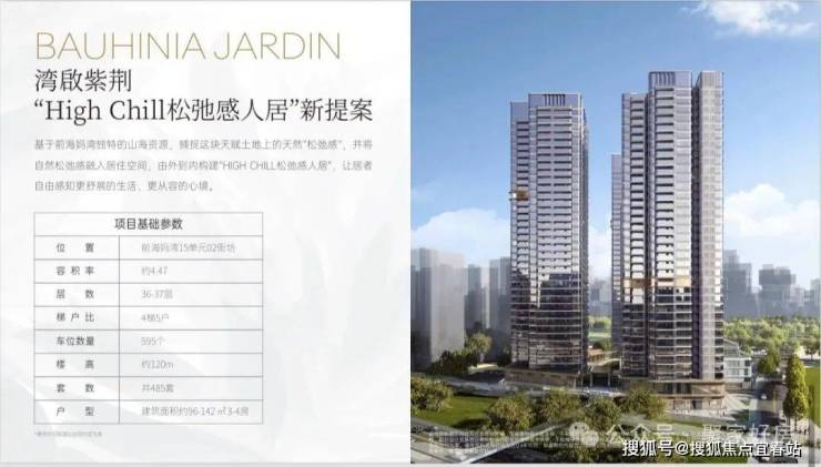 小区有485套纯住宅,车位595个,容积率5.14,共有三栋住宅,每栋做了36-37F高的4梯5户设计,每户都有专梯入户空间。