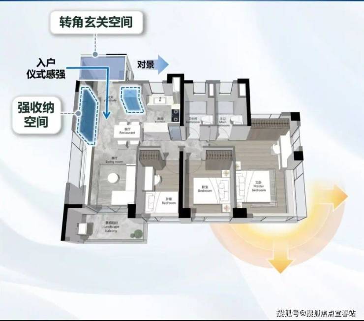 高实用率户型设计项目户型设计注重实用性,阳台占比可达到套内面积的20%,超高使用率将达到120%。这是海珠西区域新规户型中最高的使用率,特别适合注重空间利用的家庭。