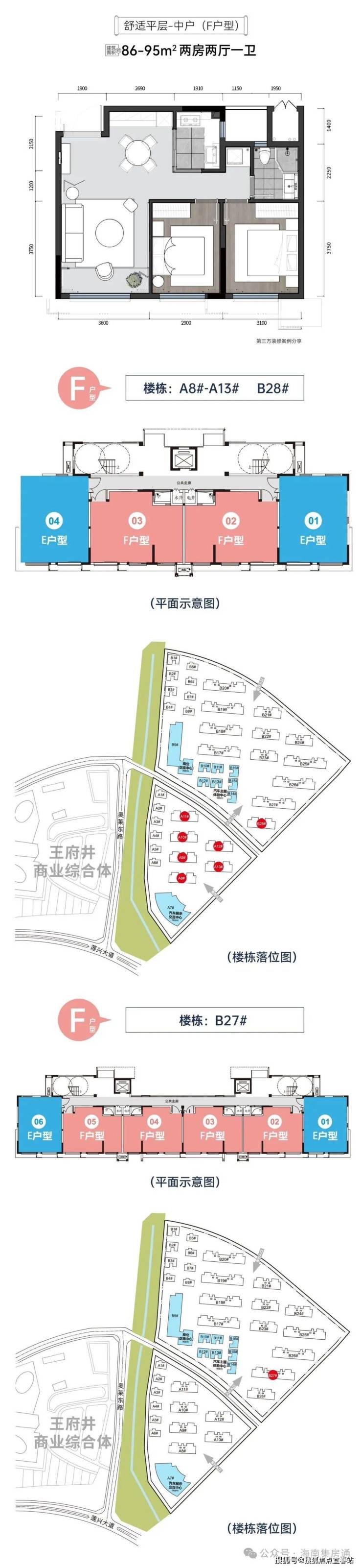平层:63-95㎡ 两房两厅一卫 总价:110-120万
