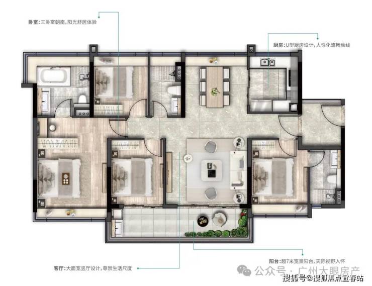U型厨房,宽尺实用,主卫干湿分离,使用效率大幅提高