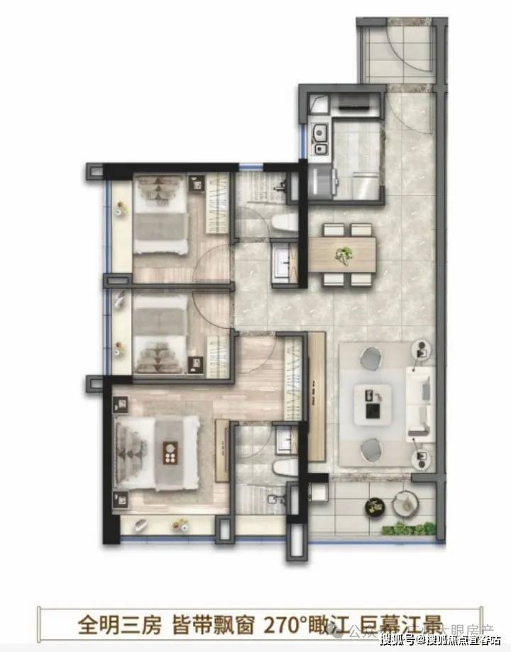 宽尺主套设计,预留衣帽间空间,南向望江,最高可270°瞰江视野