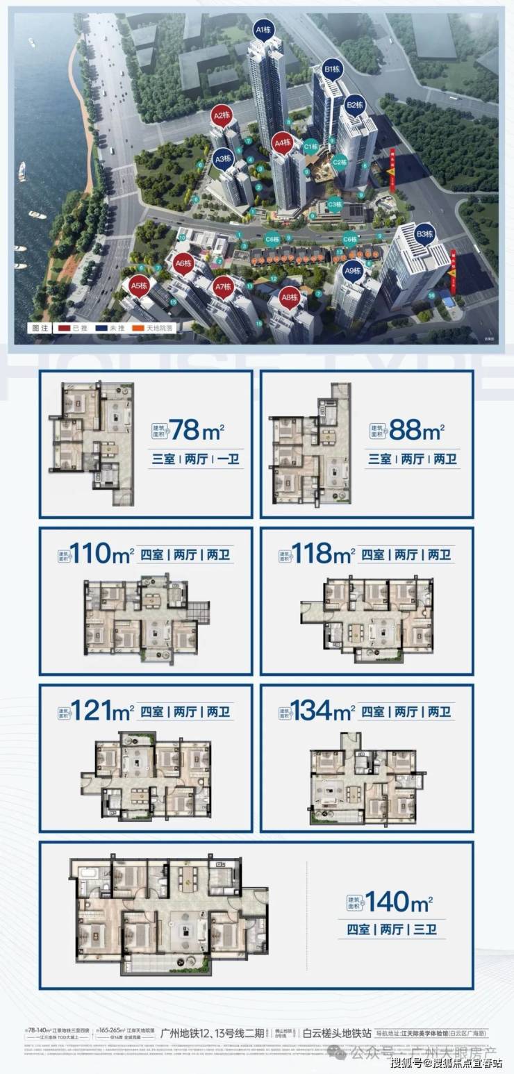 整个槎头站TOD项目一共分为三期开发,其中一期的五矿招商江天际是由五矿地产、招商蛇口和广州地铁三大开发商携手合作打造,一共有12栋,其中9栋17-33层住宅,3栋公寓,总规划户数大约是1407户
