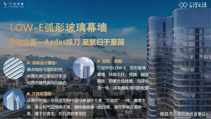 6、源系TOP级作品: 云端地标 环幕视野0约208米云端地标,270°环幕视野,坐拥地标级城市景观与稀缺山水资源:2定制超白三层中空LOW-E曲面玻璃搭配横向铝板线条,标识性的超流线立面建筑
