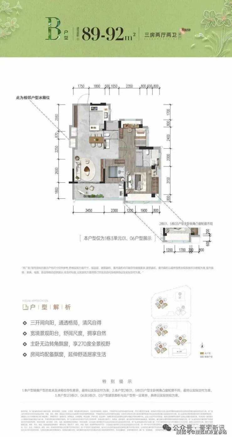 首次推首北地块1栋3单元,约80-92㎡ 3房,共195套,新规使用率高达96%-105%!