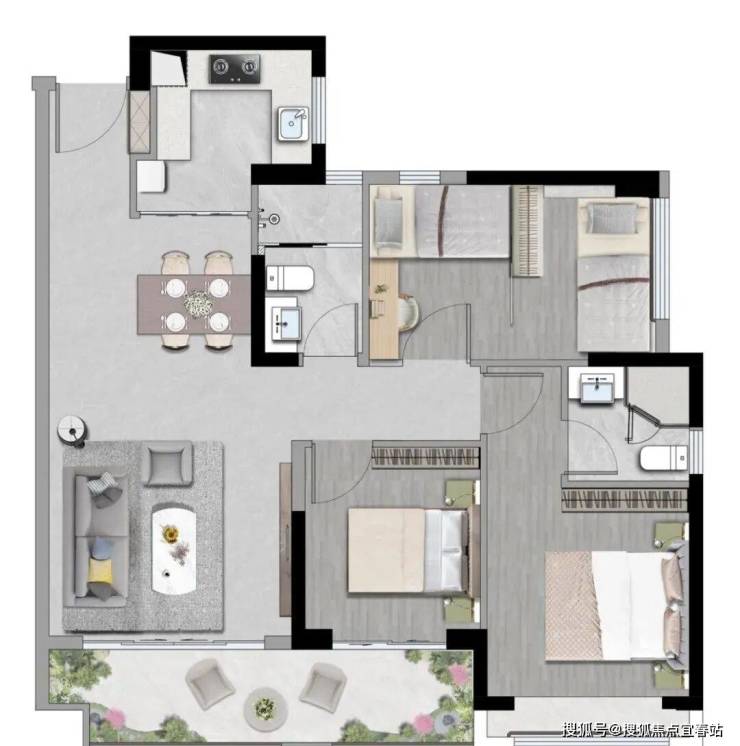 【86㎡3房2厅1卫】大面采光,全卧飘窗 阳光偏爱的空间L型厨房,动线流畅让烹饪更自在餐客一体,连通阳台 延伸生活逸趣主卧270°观景视野,私享自然风光。