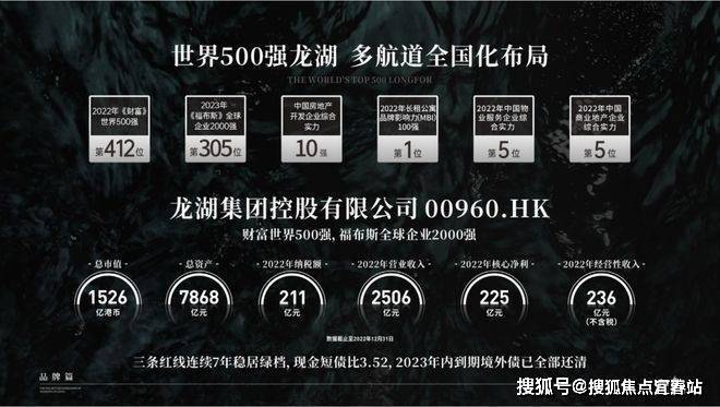 龙湖集团,世界500强,房地产综合实力TOP10。稳健的财务及持续的现金流,连续7年三道红线全绿档。