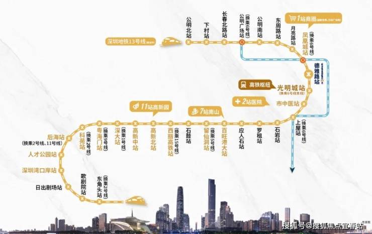 交通配套:观玥名邸家门口就是13号地铁线“德雅路站”,以前的同观路站已经改名,最高时速100公里,预计2025年开通运营,1站可到光明城站,换乘6号线/光明城高铁站,3站可到石岩,7站到西丽,8站到留仙洞总部基地,11站到南山高新园。