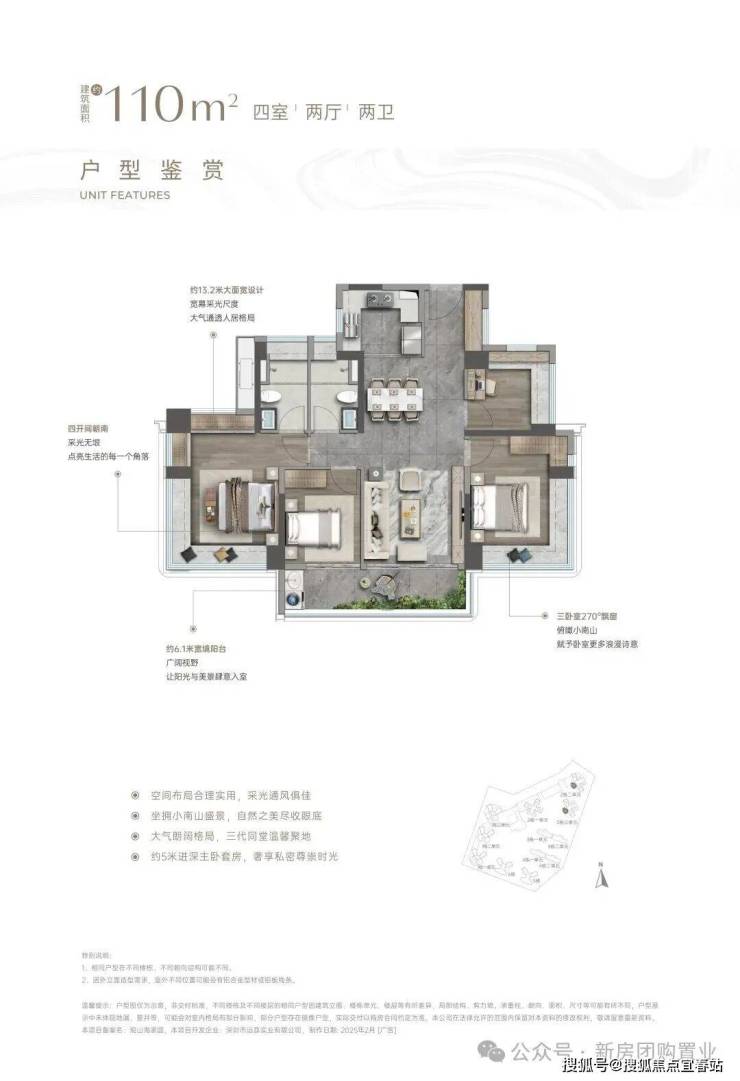 ⑥【一步到位性价比王牌 前海改善头等舱】4栋建面约138㎡奢阔山居范本:LDKB一体化,增配多功能厅、最大约15.5米南向四开间、约6m宽境阳台、主卧270°巨幕飘窗带独立卫浴及衣帽间、最高约94%拓展后综合使用率